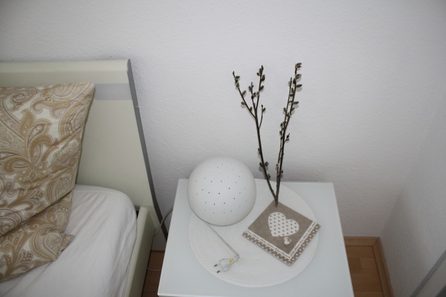 2. Im Niederfrequenzbereich, zwei eingebaute Nachttischlampen am Kopfende des Bettes.